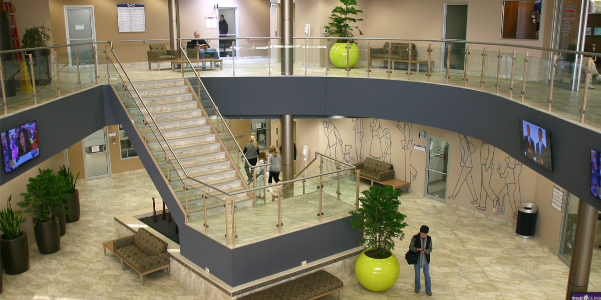 The complex greets visitors with a strikingly elegant two-story glass facade. Inside, the graceful, ergonomic interior design of the TMC brings to mind the foyer of a luxury boutique hotel more readily than it does local healthcare facilities. Decorated with a generous number of plush couches and chairs, this combination lobby and entrance hall is blanketed by free WiFi coverage and encircled by several wall-mounted high-definition televisions. There’s nothing “waiting room” about it. Soothing, leisurely music pipes through the area at a comfortable volume as patrons traverse its impressive tiled floors. The TMC complex is warmly decorated in comfortable earth tones and is well-lit, conveniently laid out, and adorned throughout with clear, easy-to-read signage. Patients, family members, and other visitors are encouraged to enjoy their time at the TMC by treating themselves to a tea, juice, or coffee at the lobby’s in-house espresso bar and cafe.
